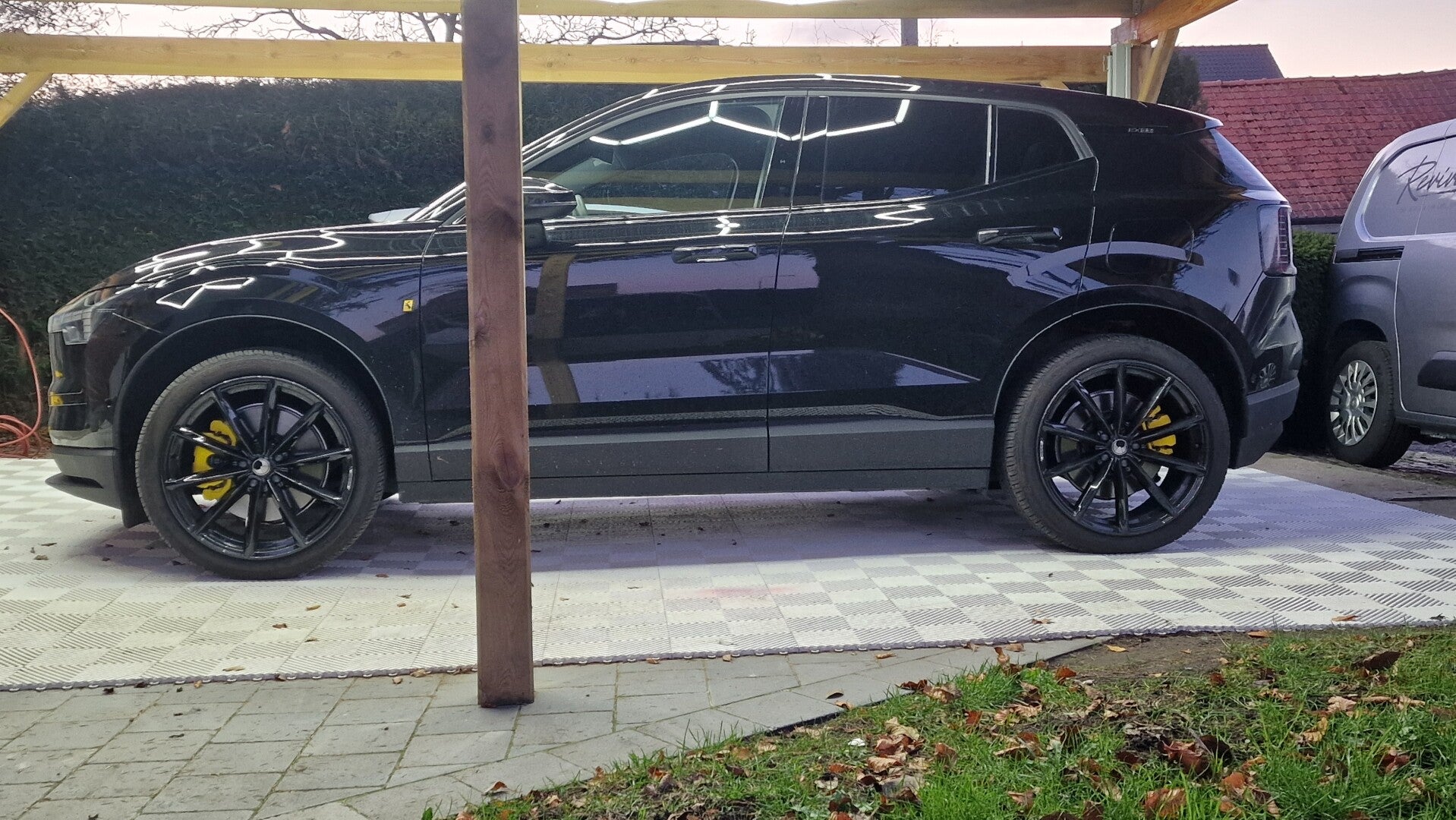 We kregen de vraag om de remklauwen te herspuiten in een specifieke kleur, afgestemd op het logo van de wagen: de Volvo Charging Moose Edition.
