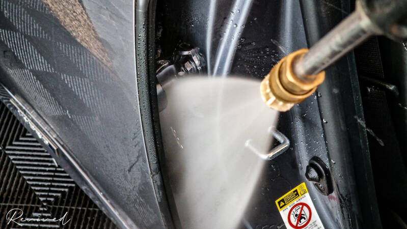 De wagen wordt gewassen met een pH-neutrale shampoo volgens een veilige wasmethode, inclusief de deurstijlen.