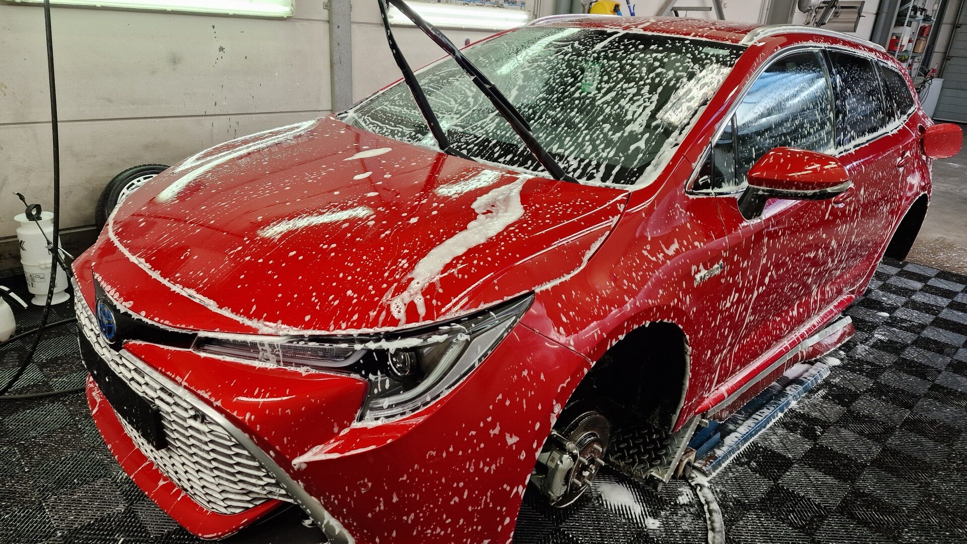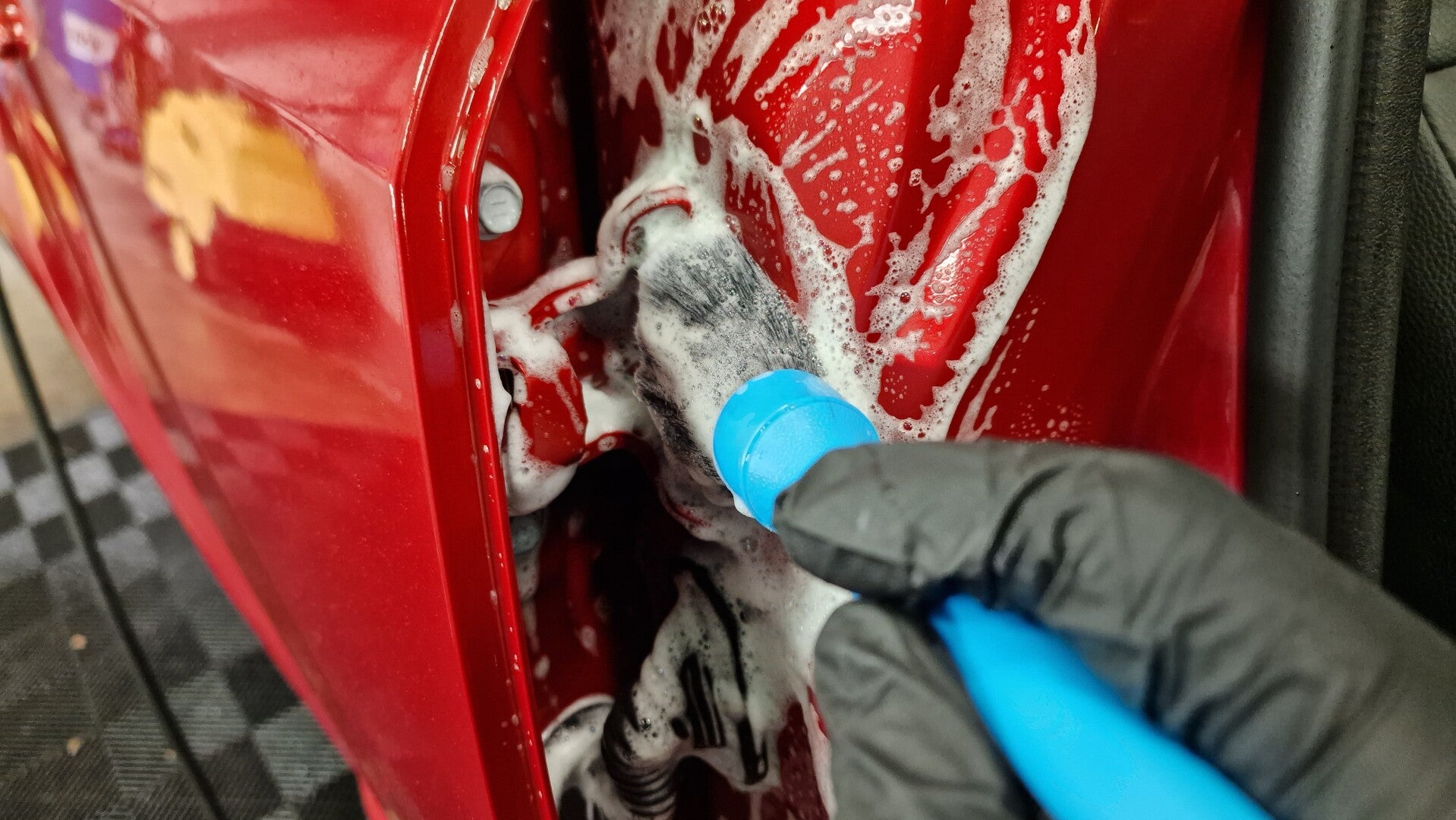 De wagen wordt gewassen met een pH-neutrale shampoo volgens een veilige wasmethode, inclusief de deurstijlen.